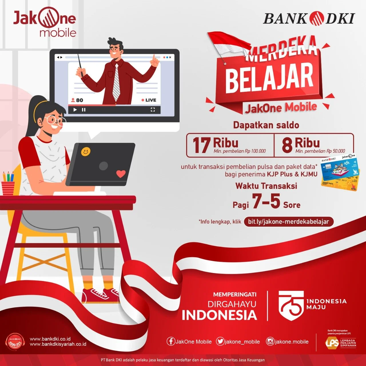 Peserta program adalah penerima KJP dan KJMU yang melakukan transaksi Pembelian Pulsa atau Paket Data dalam periode waktu pembelian pukul 07:00 pagi hingga 05:00 sore melalui JakOne Mobile