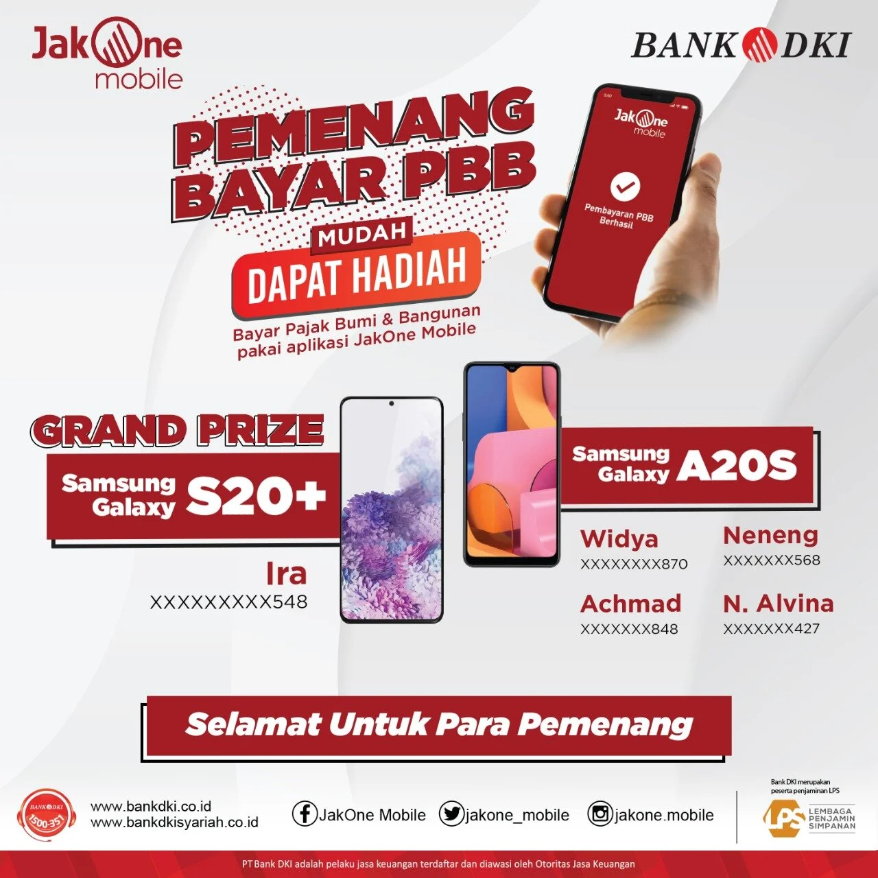 Terima kasih atas partisipasi Anda dalam program Bayar PBB Bisa Dapet Samsung Galaxy S20+ di JakOne Mobile.