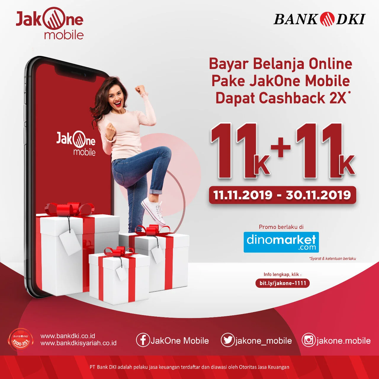 Dapetin Cashback 11k + 11k untuk kamu para pengguna setia aplikasinya yang berbelanja di Dinomarket dengan menggunakan JakOne Mobile!