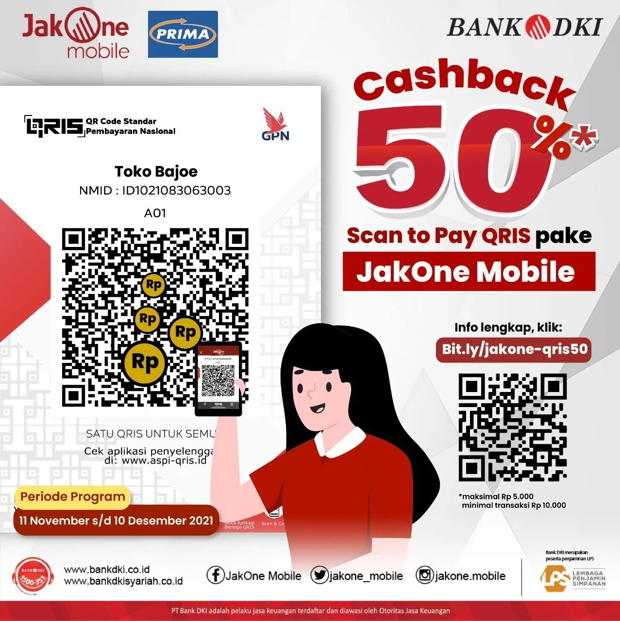 Cashback 50% Scan to Pay QRIS pake JakOne Mobile!