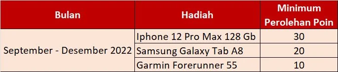 Program pemberian Poin kepada Nasabah Bank DKI yang melakukan transaksi pembayaran, pembelian, top up melalui aplikasi New JakOne Mobile pada biller yang ditentukan.