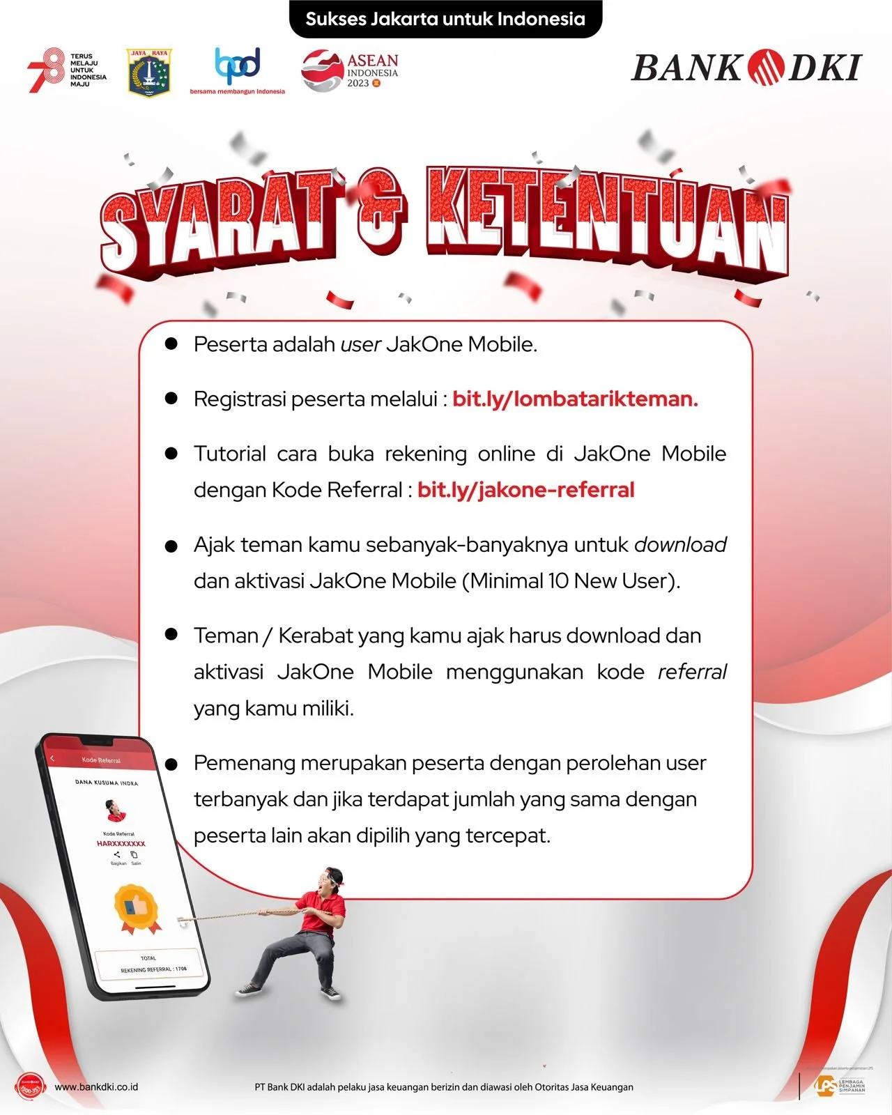 Dalam rangka memperingati HUT KE 78 Republik Indonesia, JakOne Mobile mau ajak kamu buat ikutan Lomba Tarik teman